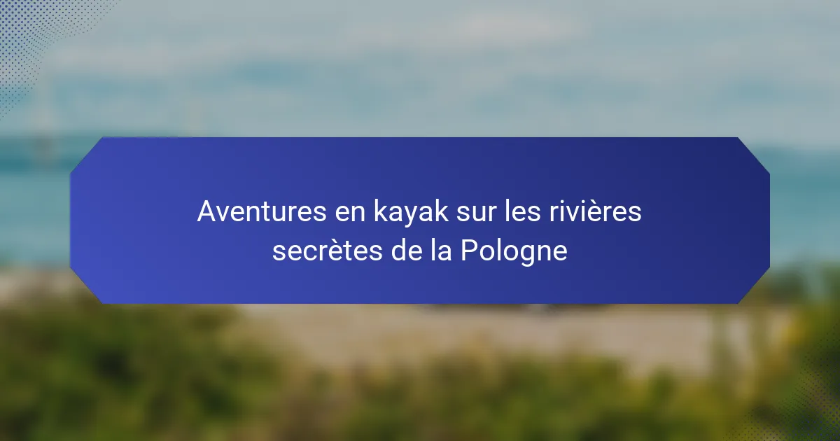 Le kayak sur les rivières secrètes de Pologne offre une expérience unique au cœur de paysages préservés. Découvrez les meilleures rivières comme la Krutynia et la Czarna Hancza, idéales pour tous les niveaux. Apprenez les équipements essentiels pour garantir votre sécurité et votre confort. Explorez les moments idéaux pour naviguer et comment capturer vos aventures.