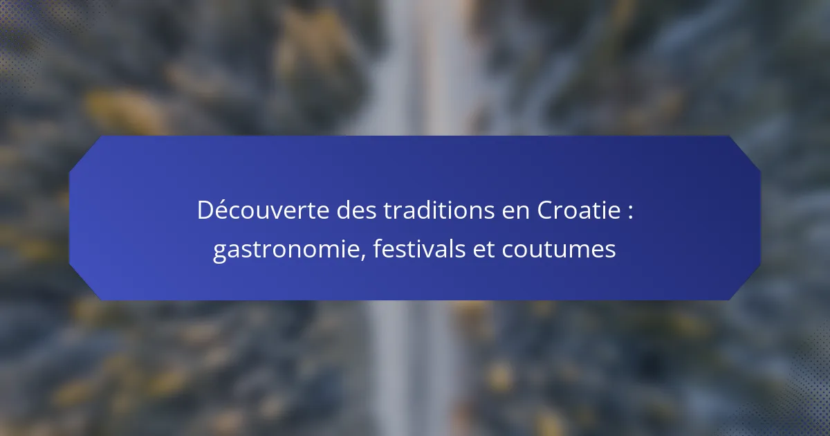 Les traditions familiales en Croatie incluent des célébrations culinaires, des festivals culturels et des coutumes uniques. La gastronomie croate, riche en saveurs, se manifeste lors des repas familiaux où des plats typiques comme le “pašticada” et le “sarma” sont souvent préparés. Les festivals, tels que le Carnaval de Rijeka, rassemblent les familles autour de la musique et des danses traditionnelles. Les coutumes, comme le respect des aînés et les rassemblements lors des fêtes religieuses, renforcent les liens familiaux. Ces éléments illustrent la richesse culturelle et l’importance des traditions dans la vie quotidienne des Croates.